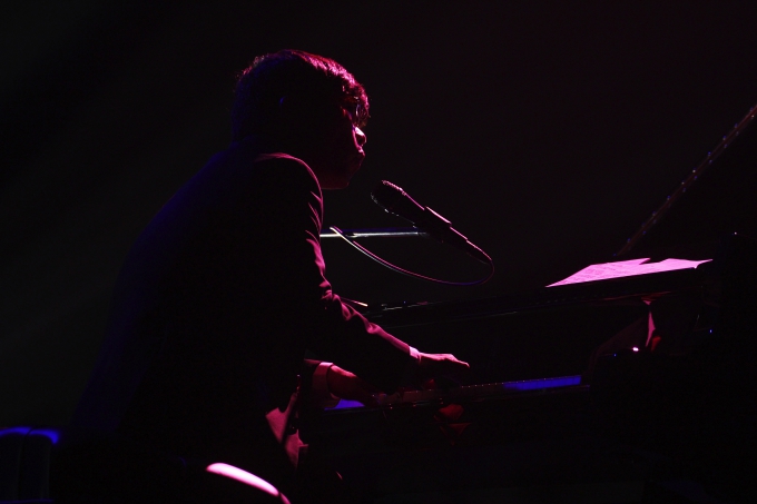 しかも曲が終わり大歓声の中、その失敗を蒸し返すように頭を軽くピアノに叩き付けたりメガネを拭いたりピアノに何か文句を言ったり。思わず会場からも笑いが大きくなっていく。それでもどこか不満げな口調で「今日は緊張感あるライヴにしたかったけど、ちょっと違うなぁ。」というさかい。