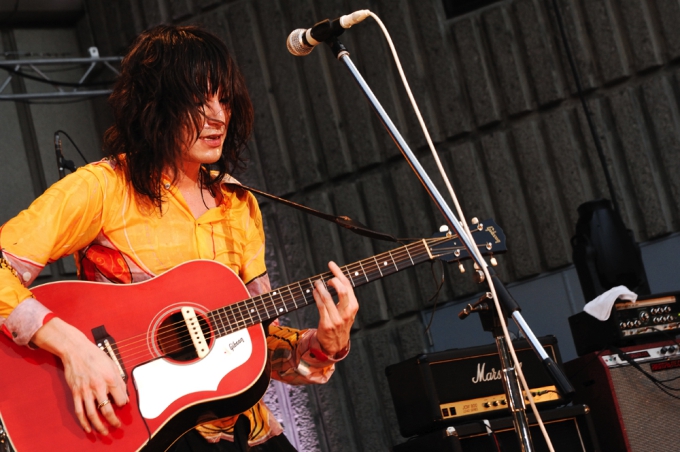 “Automatic Punk”のライヴパフォーマンス中、志磨はとうとうシンセもマイクも倒してしまい、オーディエンスの熱量を上げた。