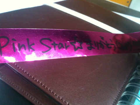 ↑ライヴ中にパーン!と降ってきたピンクのキラキラテープ。「ありがとう」ではなく「まりがとう」と書いてあるのが、しょこたんぽい。